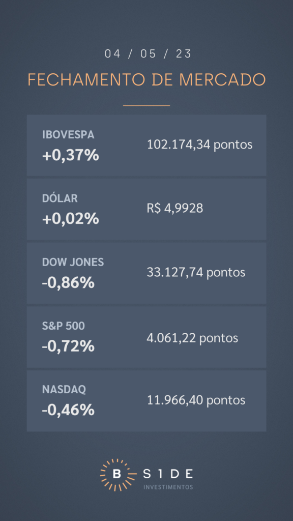 Em Wall Street, as bolsas americanas recuaram em bloco, com investidores ainda digerindo a decisão do Federal Reserve de elevar a taxa de juros em 0,25 pontos-base nos Estados Unidos, para a faixa entre 5,00% e 5,25%, e para os comentários do presidente da instituição, Jerome Powell, de que aguardará mais dados econômicos para se posicionar na próxima reunião e que um cenário de corte de juros ainda não foi discutido por membros do comitê. Somado a isso, o sentimento de cautela prevaleceu diante de novos temores relacionados ao setor bancário americano, com as ações do PacWest afundando mais de 50%, após a notícia de ontem de que o banco da Califórnia estaria avaliando opções estratégicas, incluindo uma possível venda.