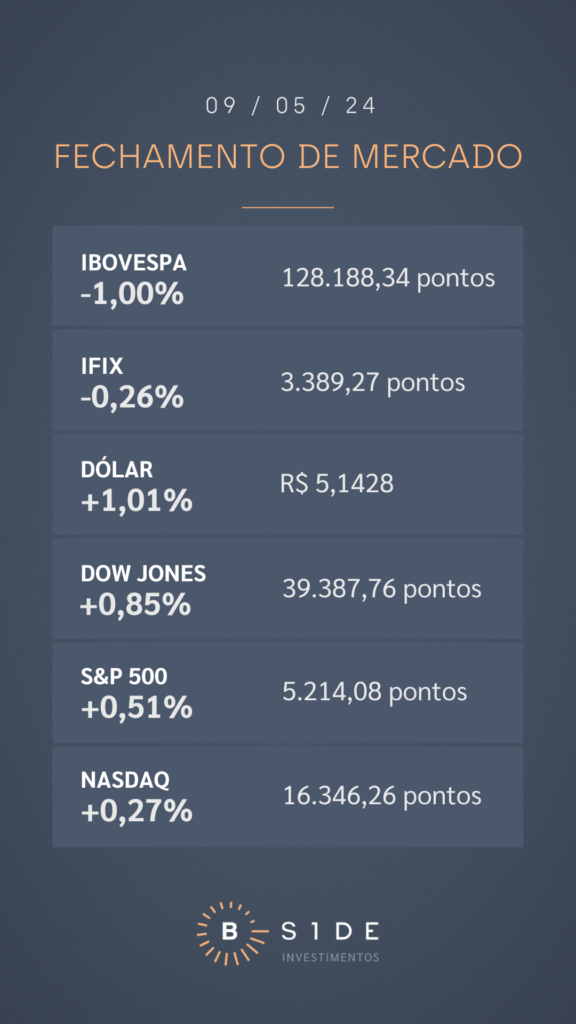 A decisão dividida do Copom não foi bem recebida pelo mercado na sessão desta quinta-feira. Assim, o Ibovespa registrou queda de 1,00%, aos 128.188,34 pontos. Ontem, o Comitê de Política Monetária do Banco Central definiu, por 5 votos a 4, um corte de 0,25 ponto percentual para a taxa Selic, levandos os juros a um patamar de 10,50%, no entanto o tom mais conservador adotado pela autoridade monetária impôs um sentimento de cautela ao mercado. A Bolsa brasileira só não teve quedas mais expressivas por conta da valorização de Vale ON (+0,81%) e Petrobras PN (+0,97%). Por outro lado, diversos papéis foram penalizados após a divulgação de balanços do 1T24, casos de Ultrapar ON (-6,34%), Eletrobras ON (-3,74%), Lojas Renner ON (-6,47%), Arezzo ON (-4,29%) e Cogna ON (-5,65%).