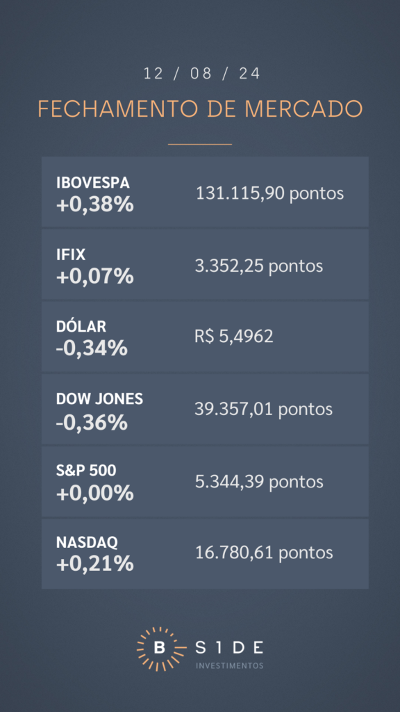 Em Wall Street, as bolsas americanas não definiram sinal único, mas encerraram o pregão próximas da estabilidade. Diante de uma agenda externa esvaziada nesta segunda-feira, o mercado fica à espera de dados de inflação, já que teremos a divulgação do índice de preços ao consumidor (CPI) de julho dos Estados Unidos e do Reino Unido, ambos na próxima quarta-feira (14). O índice Nasdaq encerrou a sessão no azul impulsionado pela valorização de 4,08% das ações de Nvidia.