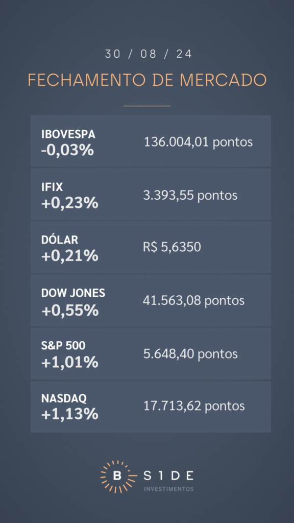 Fechamento B.Side: Ibovespa encerra agosto com valorização de 6,54%; dólar cai 0,36% no mês