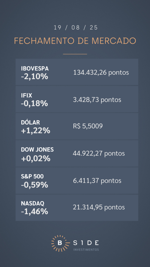 Em Wall Street, as bolsas americanas, com exceção do Dow Jones que se manteve praticamente estável, recuaram, com maiores perdas para o índice Nasdaq e, consequentemente, para o setor de tecnologia. Diante de um noticiário esvaziado, tanto em termos políticos quanto econômicos, os mercados acionários de Nova York passaram por um movimento de correção, à espera do discurso do presidente do Federal Reserve, Jerome Powell, no simpósio de Jackson Hole. Assim, Nvidia perdeu 3,50%, Tesla cedeu 1,74%, Meta caiu 2,06% e Netflix se desvalorizou 2,49%.