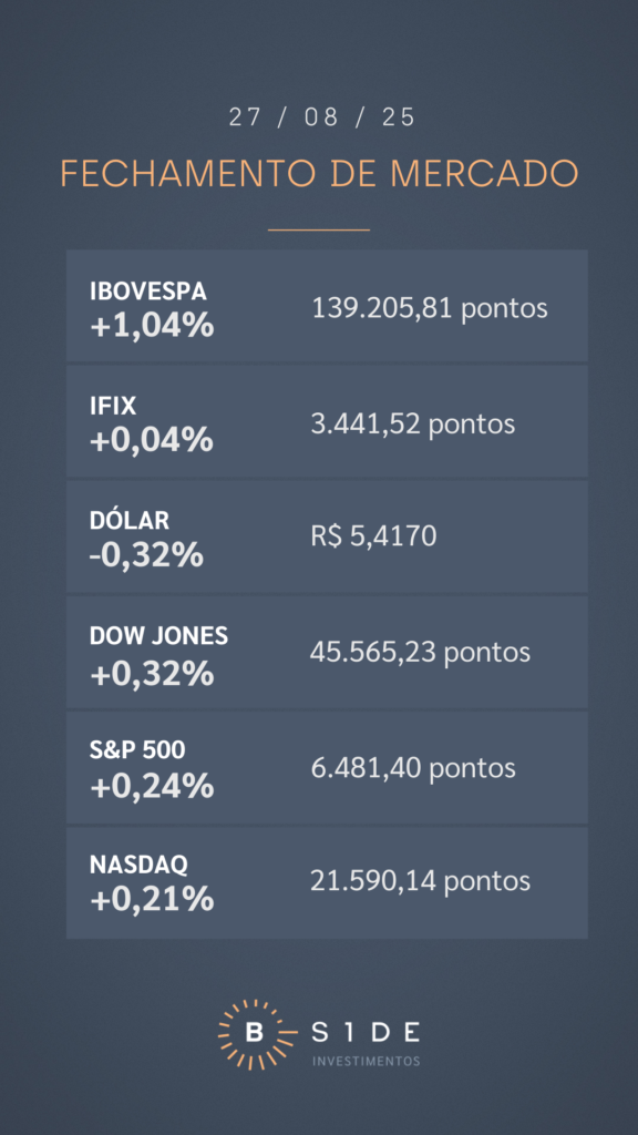 Fechamento B.Side: Ibovespa avança aos 139 mil pontos impulsionado por setor bancário e bom humor em NY; dólar recua a R$ 5,41