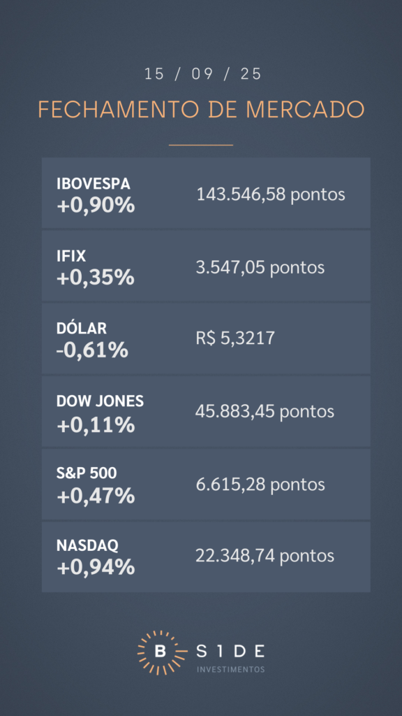 Dois fatores pesaram favoravelmente para o mercado local. O primeiro foi a expectativa para a taxa básica de juros, que caiu pela primeira vez em 32 semanas, de 12,50% para 12,38% ao final de 2026. Já o segundo foi o resultado do IBC-Br, considerado a prévia do PIB, que registrou queda de 0,53% em julho, informou o Banco Central. O resultado veio acima da expectativa de recuo de 0,3%, reforçando as apostas de antecipação do processo de afrouxamento monetário no Brasil.
