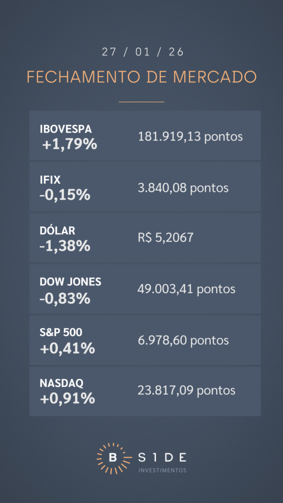 Em Wall Street, as bolsas americanas não definiram sinal único, com os índices Dow Jones no campo negativo e Nasdaq e S&P 500 no positivo, com estes dois últimos sendo impulsionados pelo setor de tecnologia, com o mercado à espera de balanços corporativos de “pesos-pesados” como Meta, Microsoft, Tesla e Apple. Apesar disso, o mercado segue cauteloso de olho nos próximos passos do Federal Reserve, inclusive sobre quem será o próximo presidente da instituição.