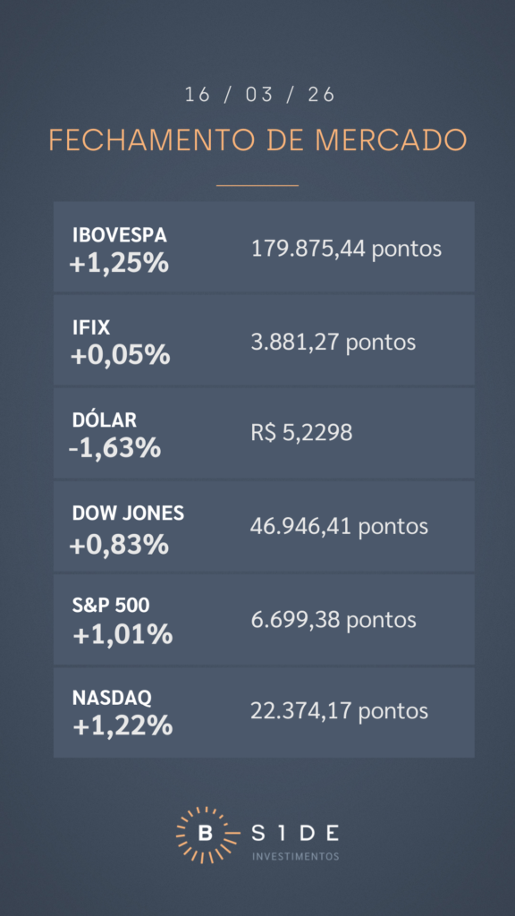 Por aqui, a reunião do Copom ainda levanta dúvidas. Segundo a economista-chefe da B.Side Investimentos, Helena Veronese, analisou que diferentes decisões pelo Banco Central para a taxa Selic na próxima quarta-feira podem ser justificáveis no atual cenário de incerteza. Um corte de 0,50 ponto percentual encontra respaldo nos dados de atividade e inflação, enquanto uma redução de 0,25 ponto reflete a maior cautela após a escalada das tensões no Oriente Médio. Já a manutenção da taxa poderia ocorrer diante do risco inflacionário associado à alta do petróleo. Nesse contexto, a B.Side revisou sua projeção de corte de 0,50 ponto para 0,25 ponto percentual.