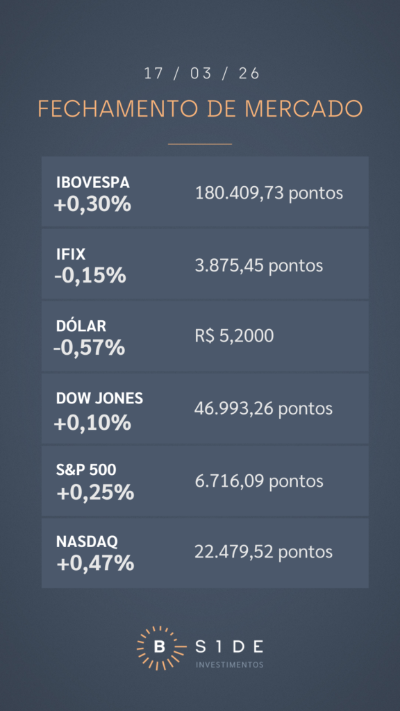 Em Wall Street, as bolsas americanas avançaram em bloco, mas também de maneira tímida, com o mercado de olho na volatilidade dos preços do petróleo e nos desdobramentos da guerra dos EUA com o Irã. Nesta terça-feira, o presidente americano Donald Trump afirmou, em uma publicação no Truth Social, que os EUA não precisam da ajuda da Otan ou de outros países para executar os planos de escolta no Estreito de Ormuz.
