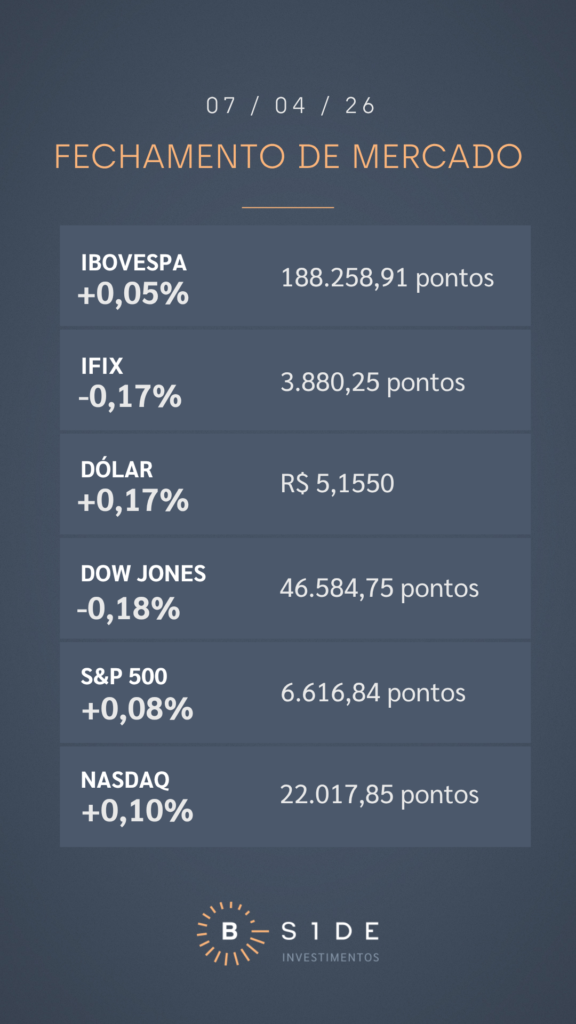 Em uma sessão marcada por um sentimento de cautela em âmbito global com o mercado atento aos desdobramentos do conflito no Oriente Médio, o Ibovespa inverteu de sinal no final do pregão e registrou leve alta de 0,05%, aos 188.258,91 pontos. Os principais nomes da Bolsa brasileira não definiram sinal único, com avanços de BTG Pactual units (+0,87%), Bradesco PN (+0,70%), Banco do Brasil ON (-0,04%) e Vale ON (+0,72%) e quedas de Itaú PN (-0,07%) e Petrobras PN (-0,88%). O mercado também penalizou com mais veemência ações ligadas à economia doméstica, com investidores priorizando blue chips.